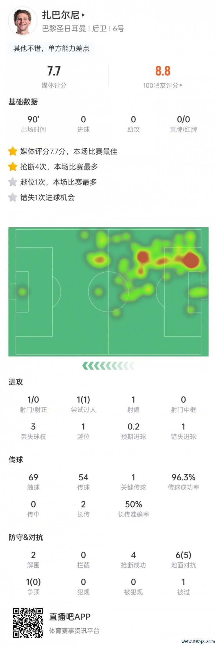 10月2日讯 欧冠联赛阶段第二轮比赛,扎巴尔尼踢满全场,匡助巴黎客场2-1打败巴萨。