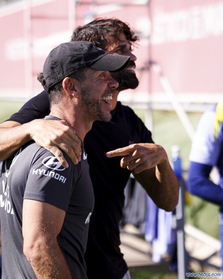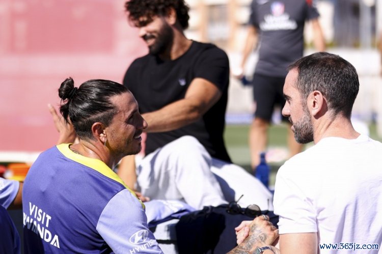 10月2日讯 马竞官方晒照,接待球队名宿迭戈-科斯塔和戈丁访问球队。