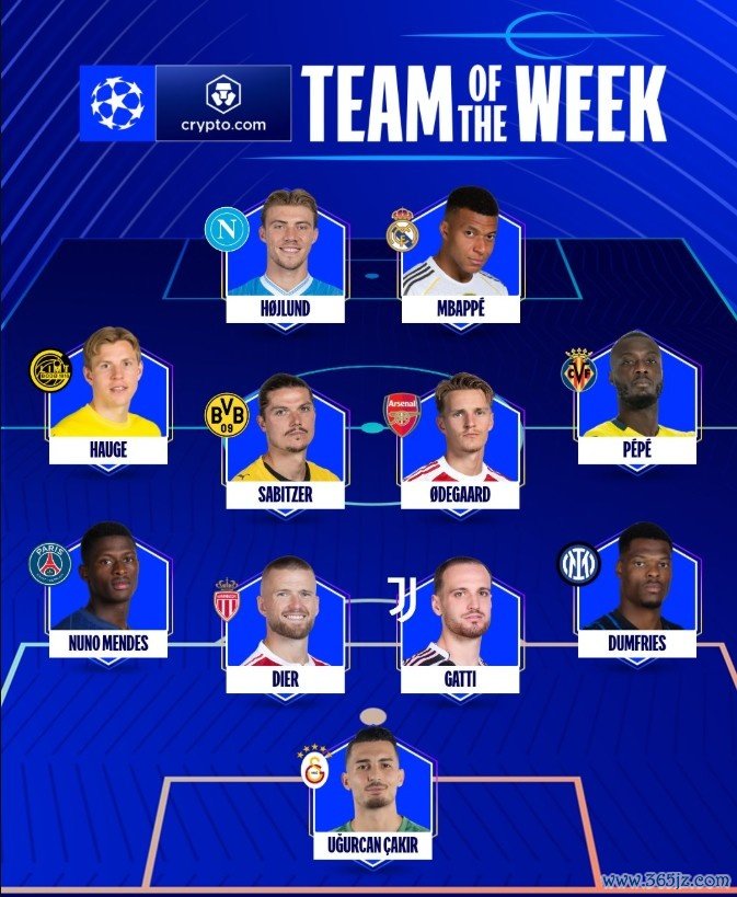10月2日讯 本周进行的欧冠联赛阶段第二轮比赛截止了一齐的争夺,欧足联官方评比出了欧冠周最好阵,姆巴佩、霍伊伦搭档锋线,厄德高、海于格、努诺-门德斯入选。