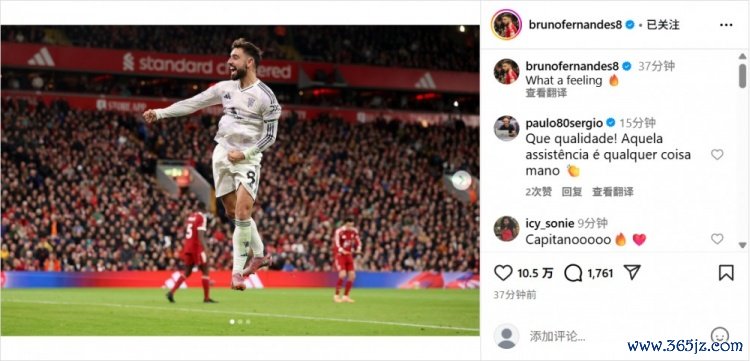 10月20日讯 本轮英超焦点战,曼联2-1客胜利物浦。赛后,曼联队长B费更新社媒庆祝胜利。