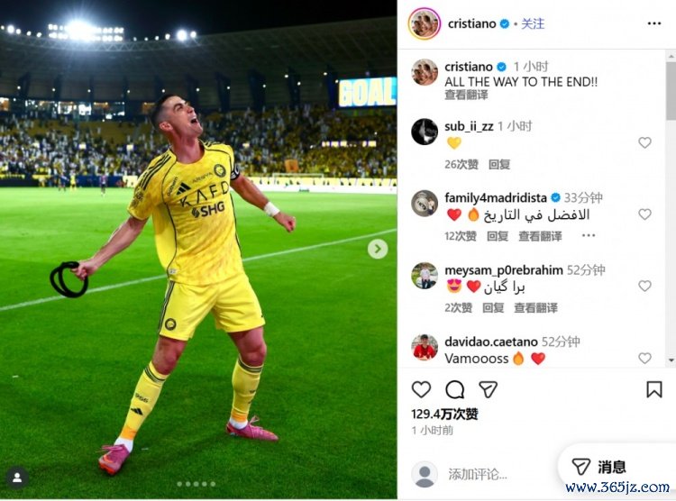 梅开二度助利雅得告捷逆转取胜,C罗晒庆祝照:奋战到底