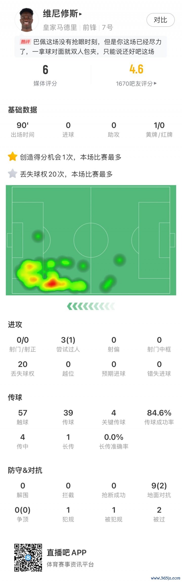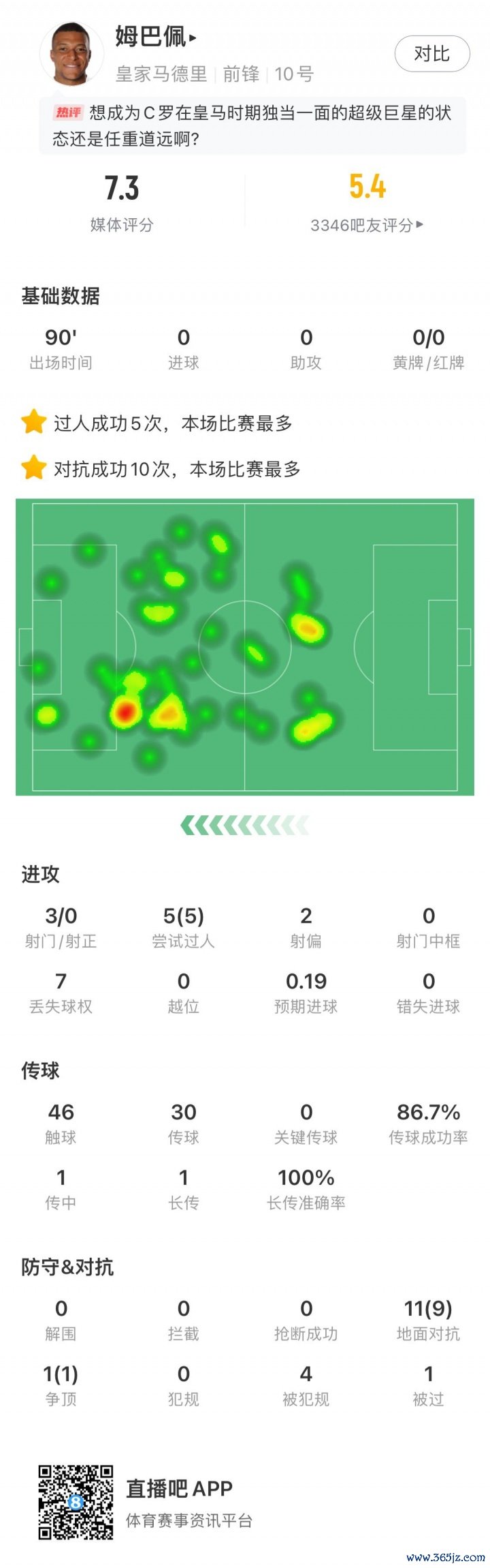 3.3亿双星0射正!姆巴佩2次射偏0重要传球 维尼修斯0射9抵御2到手