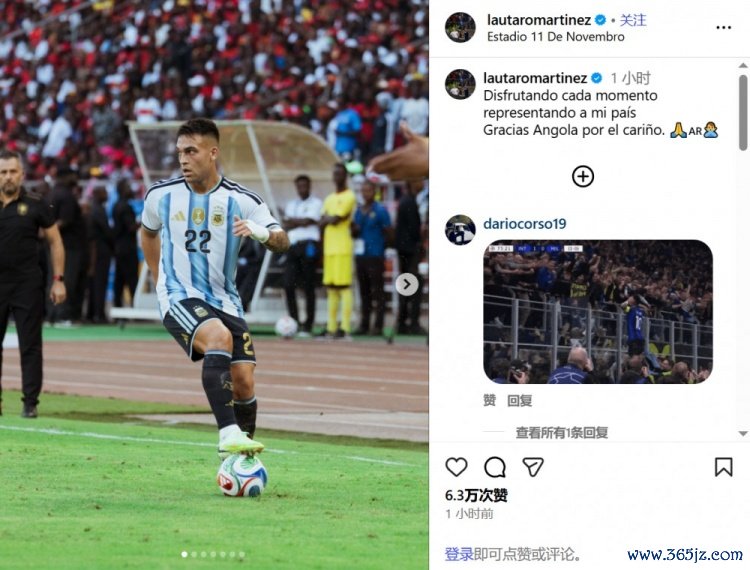 劳塔罗晒出在比赛中的像片,并配文写说念:“代表故国出战的每一刻王人让我无比享受,感谢安哥拉球迷的爱。”