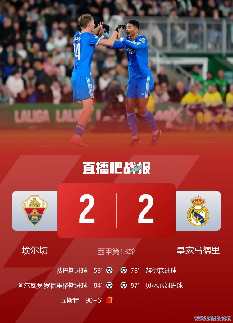 11月24日讯 西甲第13轮比赛,埃尔切主场2-2战平皇马。