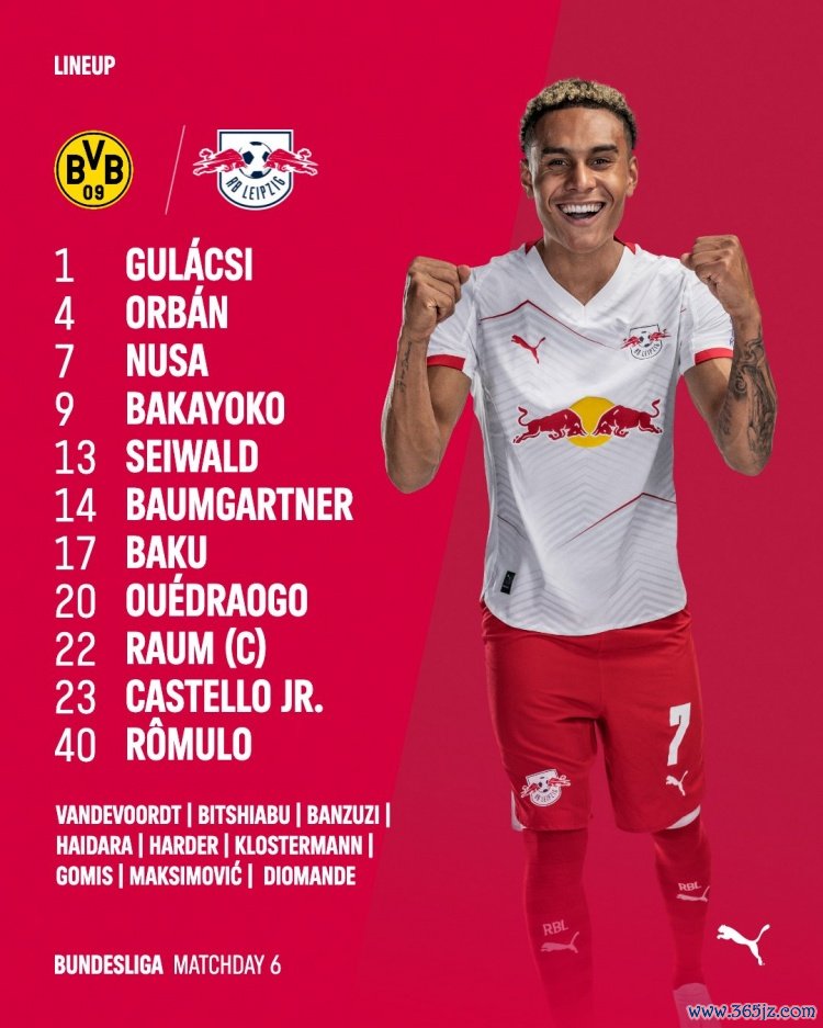 多特vs莱比锡首发:吉拉西、阿德耶米、劳姆、努萨在列