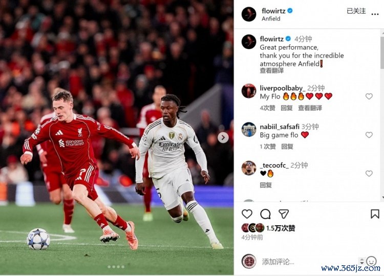 此役维尔茨为利物浦首发出战,送出5记关节传球,赛后他在打法媒体上晒出比赛像片,并写谈:“精彩的显露,感谢你们在安菲尔德营造的高出氛围!”