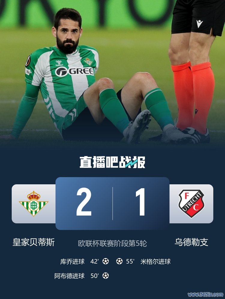 阿姆拉巴特踢到伊斯科,两东说念主双双伤退。安东尼抢断助攻库乔破门,布德破门,米格尔中线超等吊射破门。皇家贝蒂斯2-1打败乌德勒支,欧联杯5轮不败!