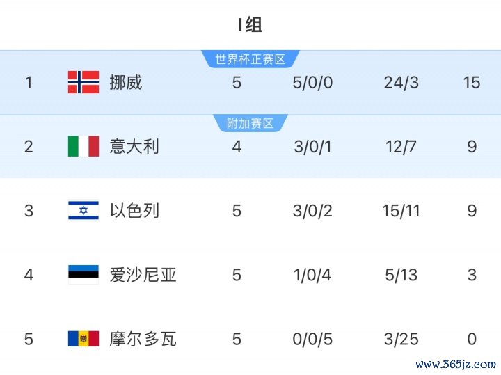 世初赛欧洲区I组,挪威5战全胜领跑,多赛1场提升第二名意大利6分+16个净胜球,剩余3轮将主场对阵以色列、主场对阵爱沙尼亚、客场对阵意大利。
