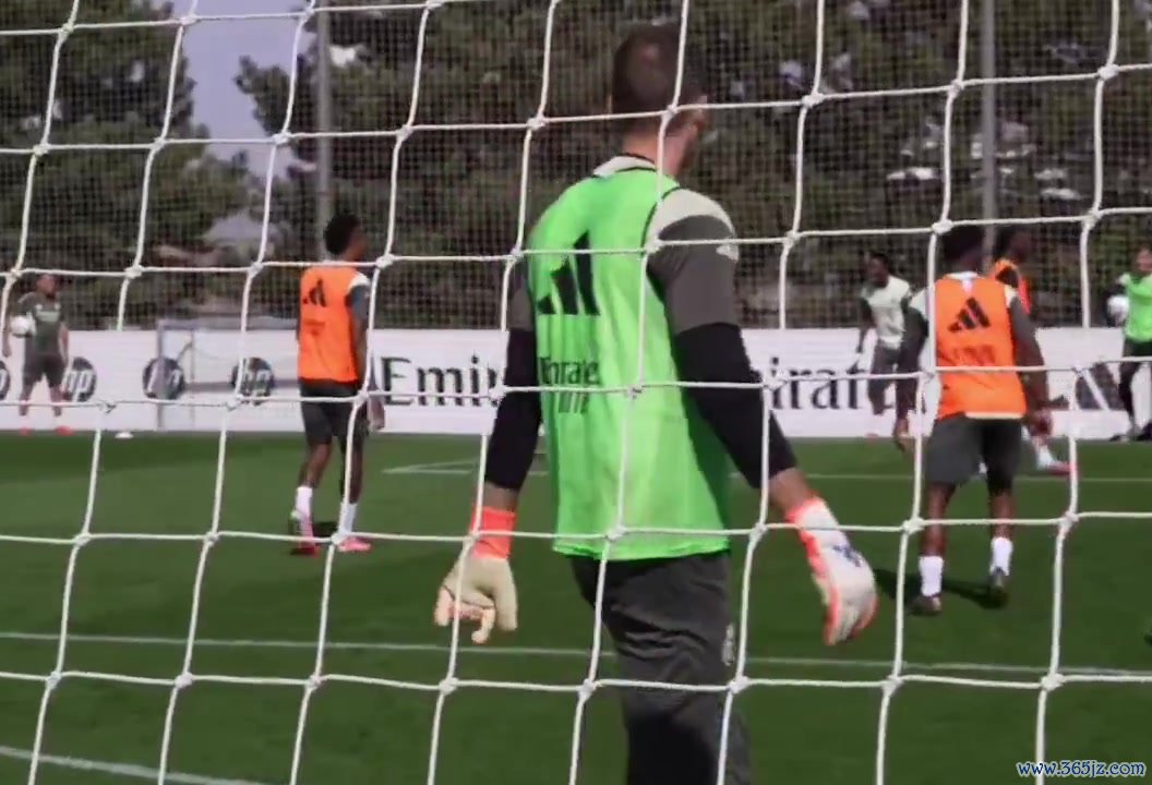 皇马正在备战这场比赛,琼阿梅尼在检修中侧身勾射破门,技惊四座,队友纷纷惊呼。