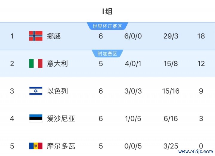 挪威多赛一场朝上意大利6分,净胜球比意大利多19个。意大利很可能聚拢三届踢世初赛附加赛。