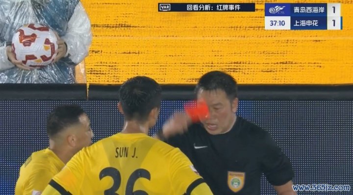 过程VAR辅导,主裁在场边不雅看回放,决定改判红牌,孙捷被径直罚下,申花多打一东说念主。