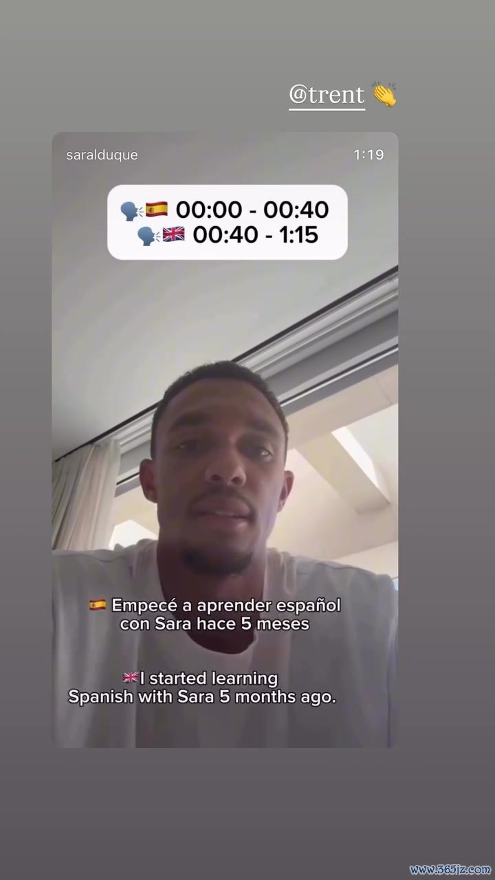 视频中,阿诺德用西语说:“你好,我是特伦特,5个月前我运行和Sara学习西班牙语。往常我从没说过西班牙语,我思更好地和队友、解释、球迷疏导,更好地适当俱乐部和西班牙生涯,是以才学习西班牙语。我止境心爱这些课程,因为这专注于足球术语、发布会、采访以及与队友的疏导,我止境心爱这些课程。”