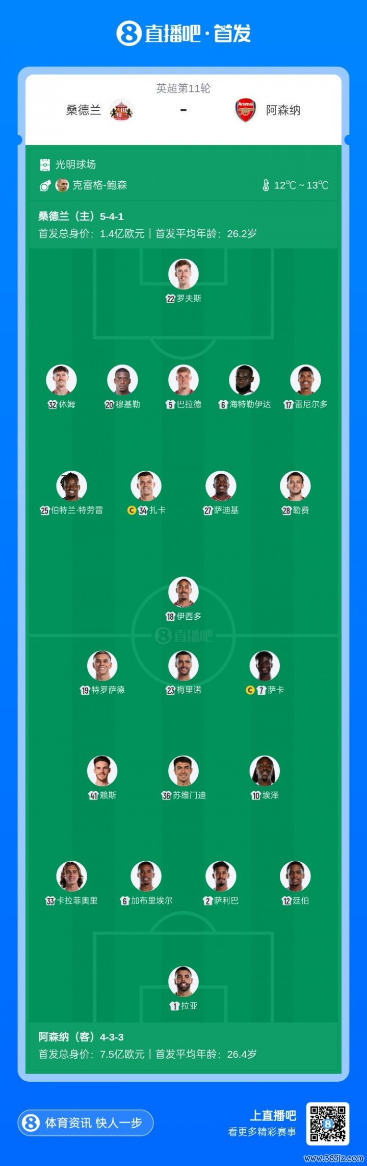11月09日讯 英超第11轮,阿森纳行将客场对阵桑德兰。