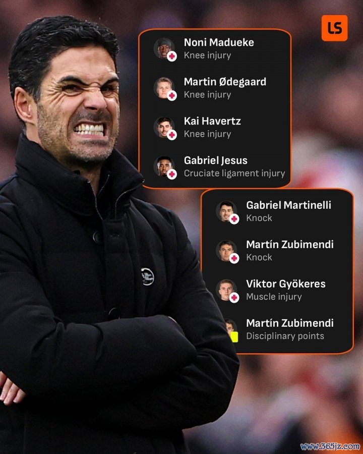 现在,哈弗茨、马杜埃凯、马丁内利、约克雷斯仍处于伤病未愈的状况,热苏斯刚刚总结考验,枪手一线队前卫仅特罗萨德和萨卡两东谈主健康大概上场,中场梅里诺还客串出任首发中锋。