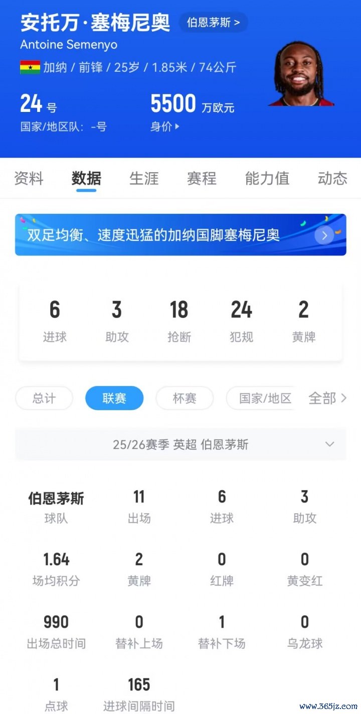 若是有球队在一月份的前两周内激活他的解约金条目,而他思离开,伯恩茅斯将无法禁绝。他曾与曼联、利物浦和热刺传出绯闻。有报谈称,阿莫林上赛季末曾与塞梅尼奥进行过会面,随后他拒却转会曼联,并与伯恩茅斯签下了新公约。