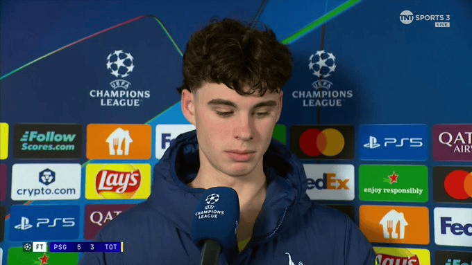 虎扑11月27日讯托特纳姆热刺中场阿奇-格雷在3-5输给巴黎圣日耳曼的欧冠赛后,给与TNTSport采访。
