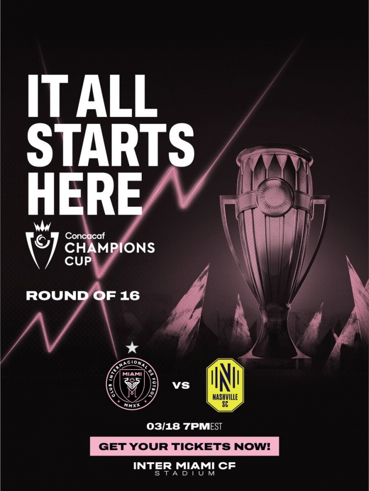 迈阿密国际将在中北美优胜者杯16强战中对阵纳什维尔,迈阿密国际官方确认,次回合比赛(迈阿密国际本场比赛)将在北京时间3月19日上午7点比赛发球动作球。