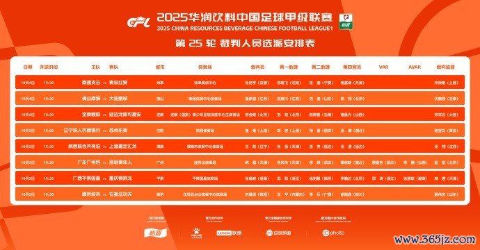 10月4日讯 2025华润饮料中甲联赛第25轮裁判遴派成果公布,广东广州豹vs深圳后生东说念主、广西平果vs重庆铜梁龙两场争二关键战均安排有VAR裁判。