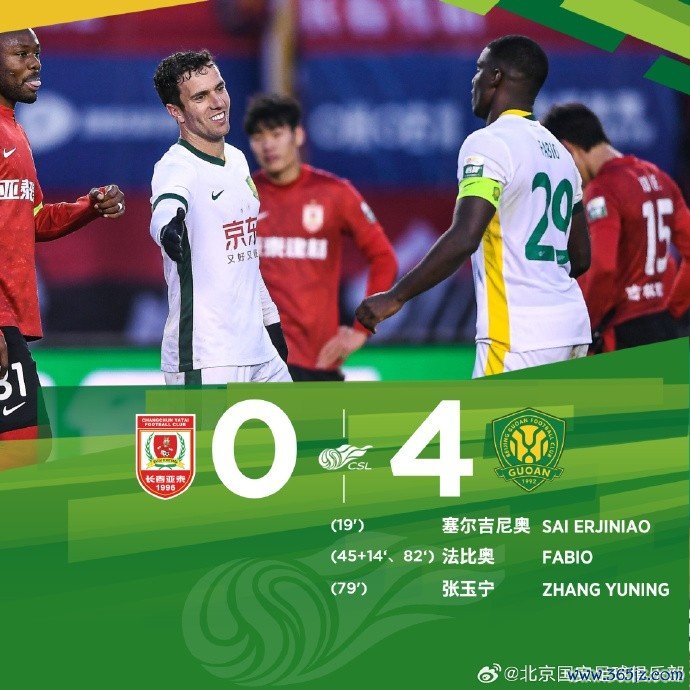 最终,北京国安客场4-0投降长春亚泰。